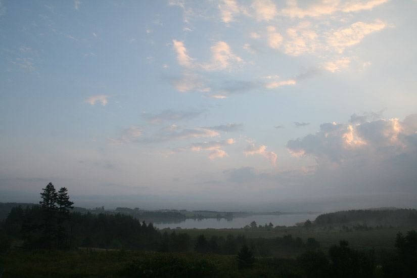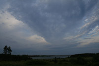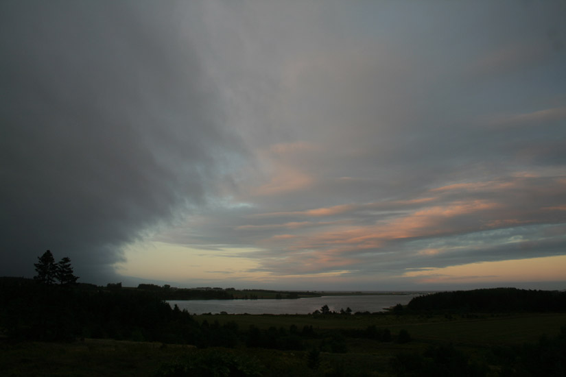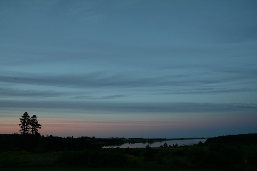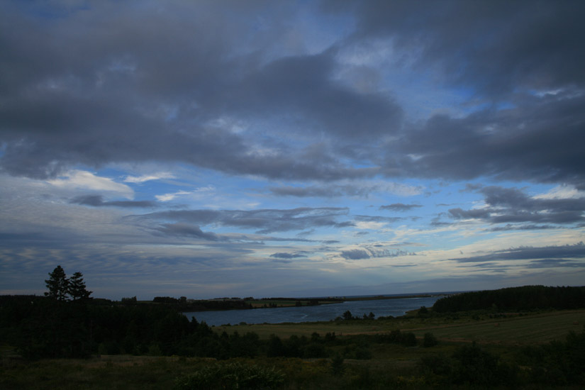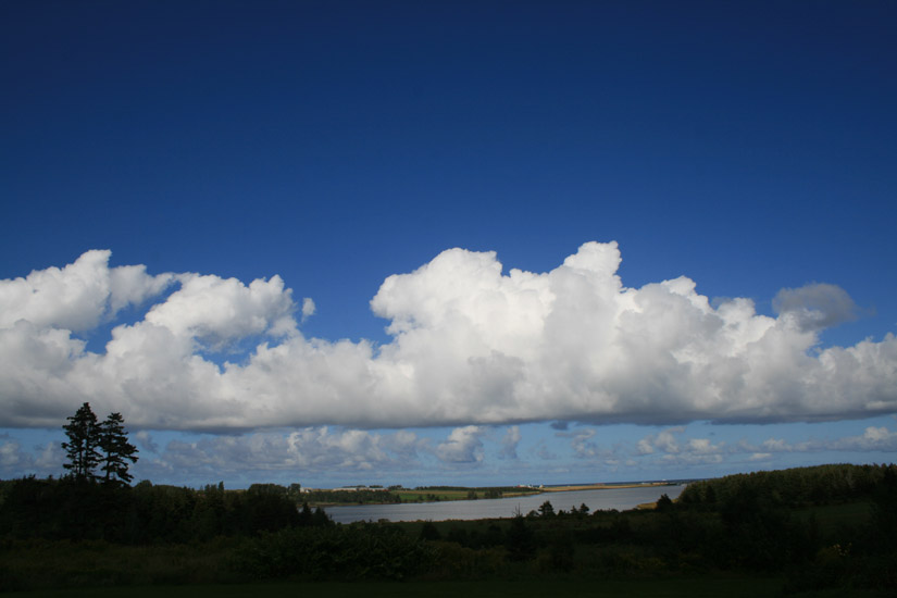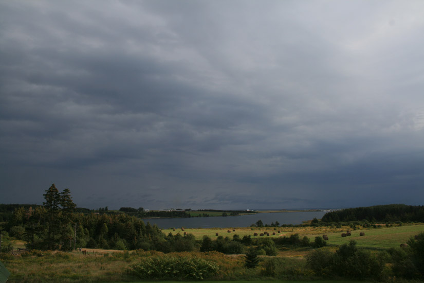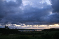 Cumulonimbus depicts the remarkable shifting storms and clouds over North Lake, Prince Edward Island. I eventually realized that I was shooting the exact same shot over and over. It grew into a body of work that has now included 7 years. This body of work includes the photos from the last four years. I shot them all from the upper window of the house where we stay for the month of August into September every year.. They reveal the remarkable shifting weather conditions. Sometimes I shoot the scene non-stop all day long. I run up stairs and take the photo. Around dusk I usually shoot the scene every few minutes for about an hour. I'm amazed by how only a few minutes can completly change the sky. My interest in this process is certainly related to Monet's Rouen Cathedral and Haystacks series. It is fascinating the way the sky is never the same. I find this view inspiring on an almost archetypal level.