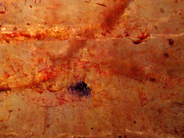 Plastic Paintings: Bodily Fluids 1, acrylic in plastic wrap sculpture, photograph of installation.