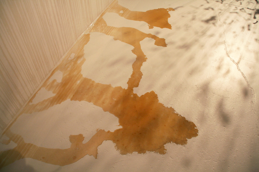 Detail of Gareth Bate's Colony Collapse honey installation pooling on the floor. Indicator exhibition: photo: Gareth Bate.