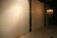 | Indicator was a three person installation exhibition presented for Toronto Nuit Blanche 2013. Indicator species such as Birds, bats and bees signal the deteriorated state of ecosystems, warning us when our environs are in trouble. These three installations investigate the concept of biological indicators and the suffering of wildlife due to habitat destruction, climate change, and environmental contamination. Jessica Marion Barr's "Augury : Elegy" formed a rain cloud of bird bones. Karen Abel's "Hibernaculum" was a chandelier inhabited by crystalline cast-sugar bats. Encircling the space was Gareth Bate's ghostly "Colony Collapse" an amphitheatre-like wall mural of the ancient Roman Coliseum and aquiducts hand drawn with liquid honey. The honey gradually slid down the walls leaving a ghostly image and pools on the floor. Read more | ||||||
