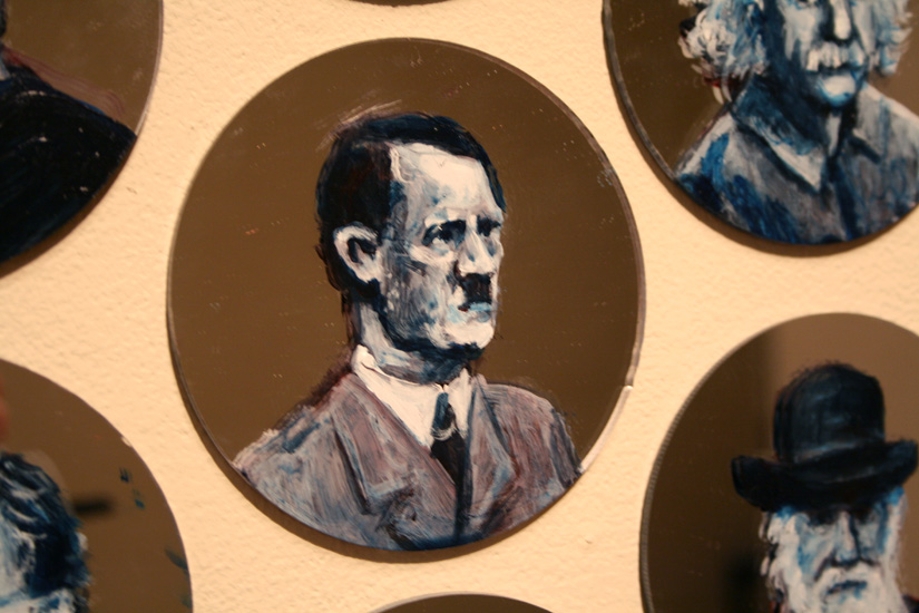 Detail: Adolf Hitler, Jewel Net of Indra installation, 1000 acrylic mirrors with 325 acrylic painted portraits, Aug. 2011 - present, photo: Gareth Bate.