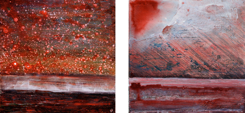 | Moments: Pink Storm Pomegranate Night, acrylic on wood, 2 Paintings: 8 x 8 inches, Feb.-Dec. 2010, sold. Return to Painting Menu | Return to Moments Menu | Artist Statement |