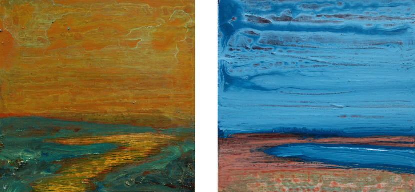 | Moments: Chartreuse Blue Sky, acrylic on wood, 2 Paintings: 8 x 8 inches, Feb.-Dec. 2010, available. Return to Painting Menu | Return to Moments Menu | Artist Statement |