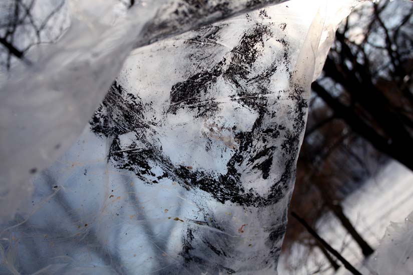 | Plastic Paintings: Self-Portraits Installation in High Park, Toronto, acrylic & ink on plastic tarp, Oct. 07 - Feb 08. Return to Installation Menu | Return to Self-Portraits Menu | Artist Statement |