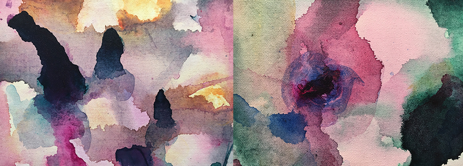 The paintings at the top are wet on wet, and the ones below are layering. Paintings by Gareth Bate.